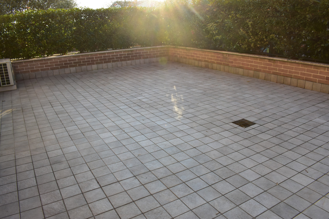 Il giardino piastrellato esterno rappresenta il luogo perfetto per godersi momenti all'aria aperta o semplicemente rilassarsi dopo una lunga giornata. Situata in una zona tranquilla, l'appartamento beneficia della vicinanza alla fermata dell'autobus, rendendo gli spostamenti verso altre zone della città estremamente comodi.