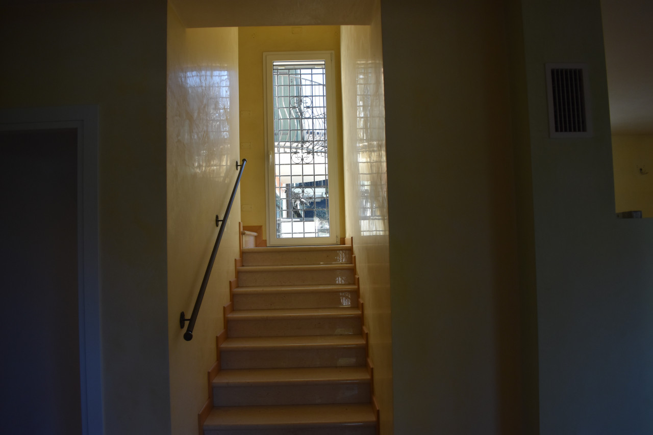 Con una superficie di ben 410 mq, la villa offre ampi spazi per vivere con comodità. Al piano terra si accede tramite un ingresso indipendente che conduce a un luminoso salone dotato di camino per il riscaldamento ambiente. La cucina separata è ideale per chi ama cucinare e intrattenere gli ospiti. Completano questo livello uno studio perfetto per lavorare da casa, una lavanderia funzionale e un bagno elegante; tutti gli ambienti sono rifiniti con pavimenti in terrazzo veneziano e pareti tinteggiate con tecniche di spatolato.