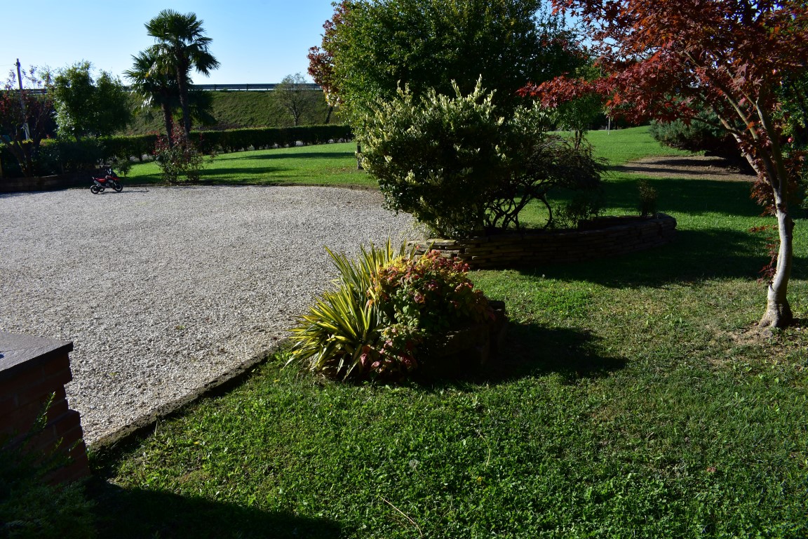 L’ampio porticato arricchito da dettagli in ferro battuto sulle finestre offre privacy ed atmosfera suggestiva mentre il grande giardino curatissimo dona relax tutto l’anno grazie ad alberature mature ed angoli fioriti; vialetti ghiaiati facilitano l’accesso carrabile alla proprietà.