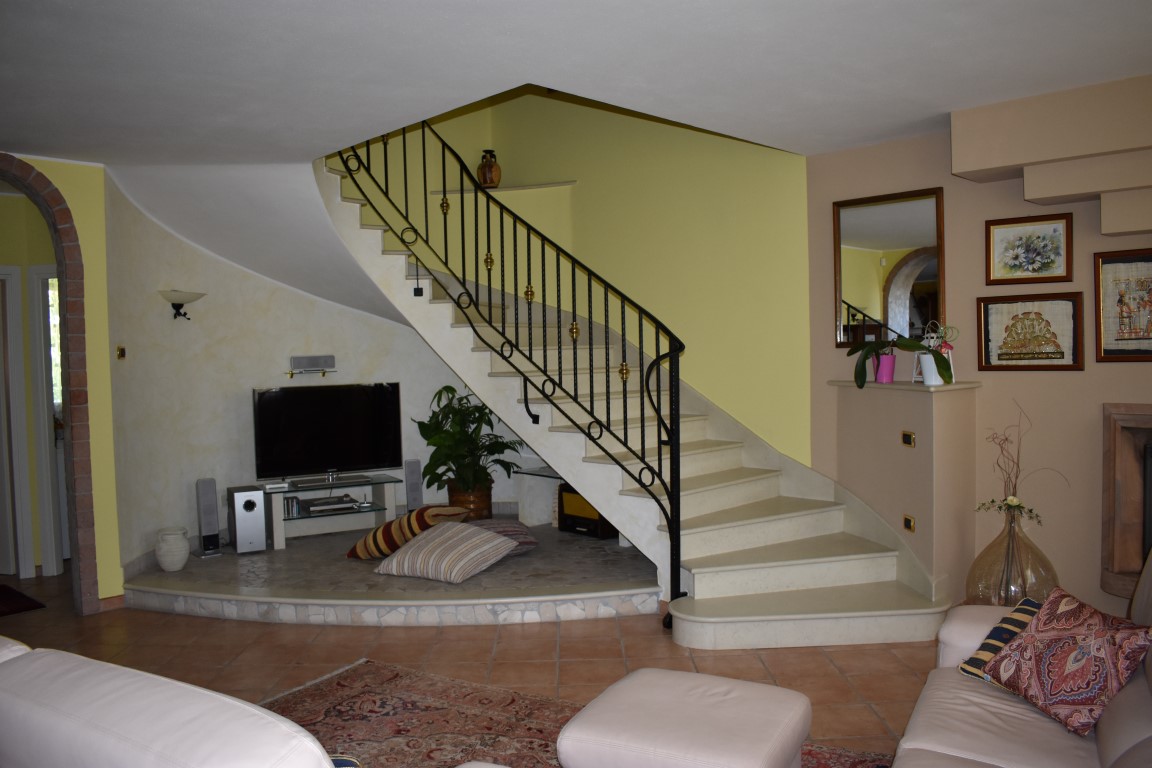 La villa è composta da due unità: una parte internamente al grezzo di 127 mq, ideale per creare uno spazio personalizzato secondo le proprie esigenze; la porzione abitabile invece si sviluppa su 226 mq distribuiti su due livelli. Al piano terra troviamo un elegante portico pavimentato dove trascorrere piacevoli momenti all’aperto, accessibile dalla cucina luminosa di circa 30 mq e dal salone doppio con camino tradizionale (circa 40 mq), bagno finestrato e lavanderia separata. Salendo al primo piano ci accoglie la camera padronale di ben 30 mq affacciata sul balcone coperto dallo stile rustico raffinato, altre due camere matrimoniali spaziose, studio privato e ulteriore bagno molto ampio dotato di vasca.